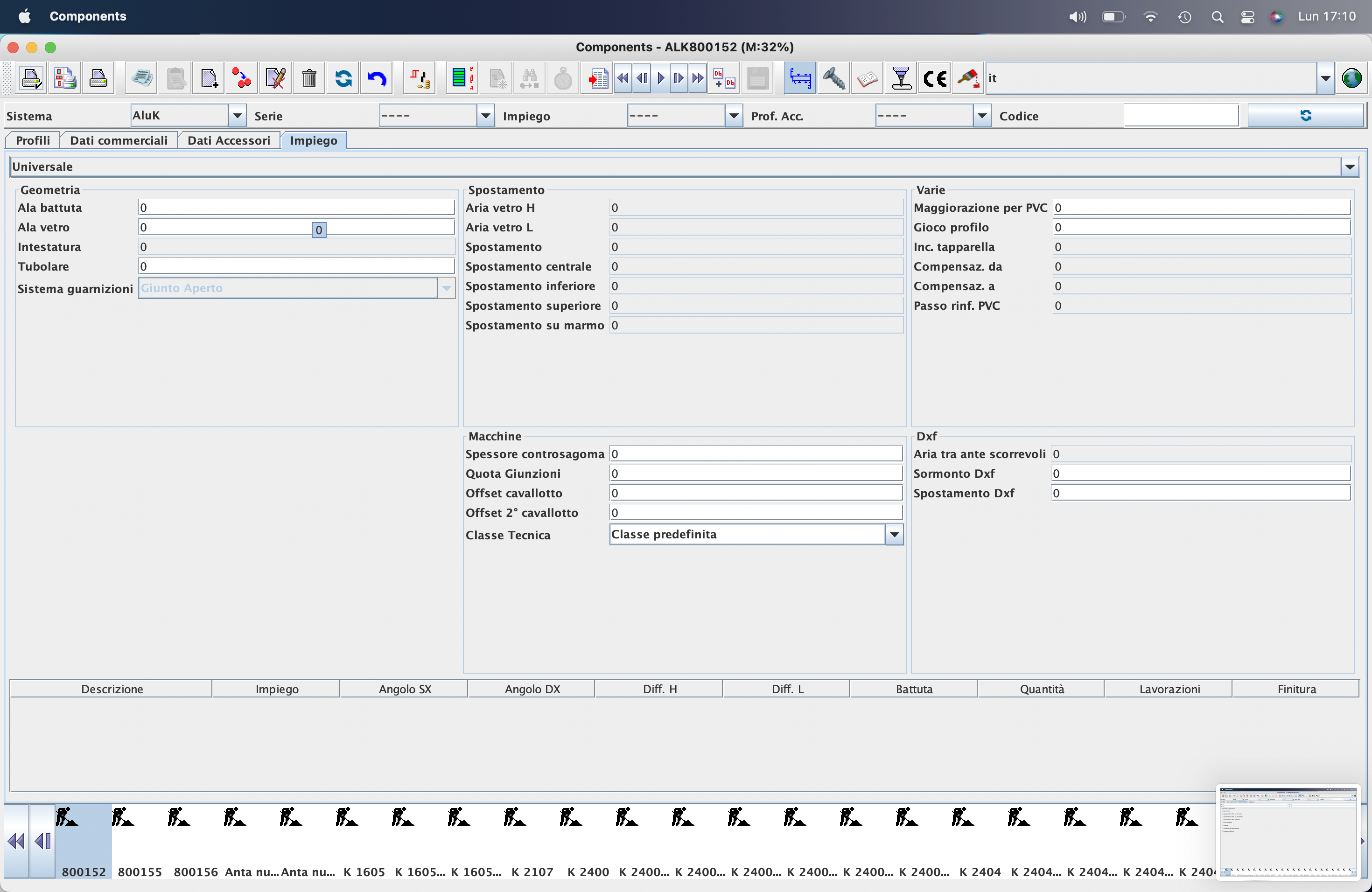 Offset cavallotto: la lavorazione di un cavallotto per default viene fatta al centro del montante /traverso (quota inserita dall'utente); il valore di offset indica di quanto la lavorazione si sposta rispetto alla posizione dell’accessorio.