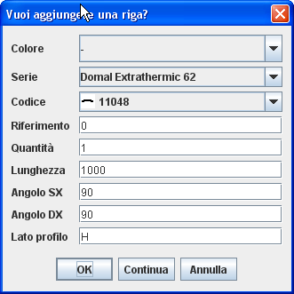 Come è ovvio, i campi da inserire varieranno dall’esempio mostrato: in questo caso, ci sono i campi che permettono di definire i parametri del nuovo profilo di cui si vogliono ottimizzare i tagli. I tre bottoni in fondo appariranno invece in tutte le situazioni di inserimento: