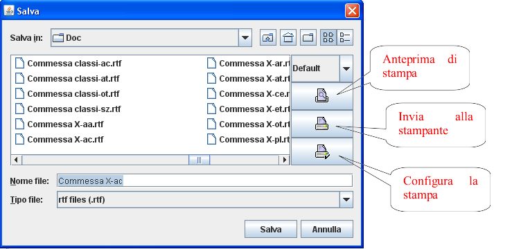 rtf (Rich Text Format) leggibile da tutti i più diffusi word processor (ad esempio Word di Microsoft, ma anche il word processor appartenente ai pacchetti freeware come Star Office). Sarà possibile quindi modificare ulteriormente il documento prodotto prima di passarlo in stampa.